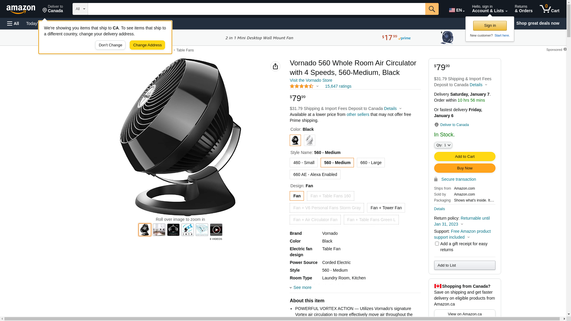 | Feature | "Utilizes Vornado's signature Vortex technology for whole room air circulation" |