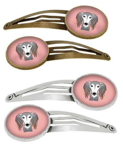 Checkerboard Pink Saluki Barrettes Hair Clips, Set of 4, 4PK