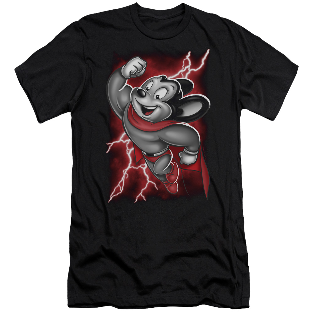 Trevco CBS1143-PSF-4 Mighty Mouse & Mighty Storm Adult Premium Canvas Slim Fit 30-1 HBO Short Sleeve T-Shirt, Black