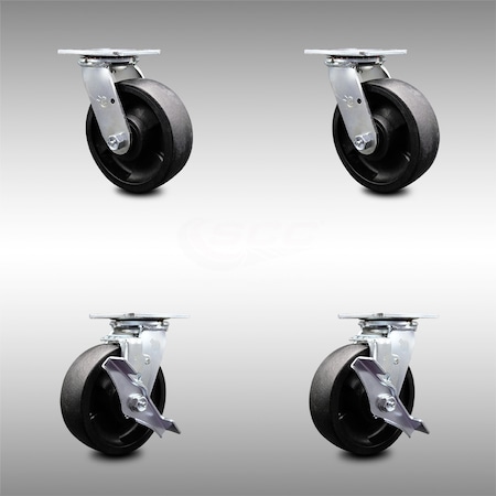 Stainless Steel Glass Filled Nylon Swivel Caster w/Main. Free Bearings Set of 4 w/6" x 2" Black Wheels - Includes 2 Swivel with Brakes & 2 Swivel - 5000 lbs Total Capacity - Service Caster Brand