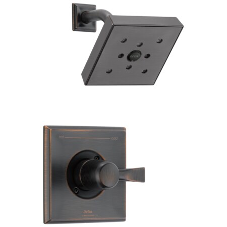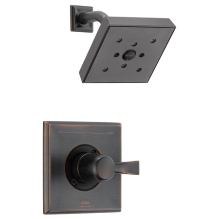 ADA Compliant: Yes. Drain Included: No. Escutcheon Dimensions: 7". Finish: Oil Rubbed Bronze. Handle Material: Metal. Handle Style: Lever. Handles Included: Yes. Includes: Valve trim, shower head, shower arm, lever handle. Made in: U.S.A.. Manufacturer Finish: Venetian Bronze. Manufacturer Warranty: Limited Lifetime. Manufacturers Collection Name: Dryden. Mounting Location: Wall Mount. Number of Handles: 1. Other Features: H2Okinetic Technology gives the feeling of more water without using more water, Monitor feature protects from sudden changes in hot or cold water pressure, MultiChoice Universal Valve allows for future upgrades without altering plumbing. Pressure Balanced: Yes. Requires: Rough in Valve, Diverter. Rough In Valve Included: No - Trim Only. Rough In Valve Required: R10000-UN. Scald Guard: Yes. Shower Arm Length: 6". Showerhead Flow Rate: 2.0 GPM. Showerhead Shape: Square. Showerhead Spray Settings: 1. Showerhead Type: Single Function Showerhead. Showerhead Width: 6-9/16". Temperature Control: Yes. Thermostatic: No. Type of Faucet: Shower Faucets.