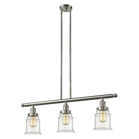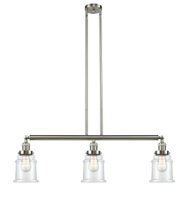 Innovations Lighting 213-SN-G182 Canton - Three Light Adjustable Stem Island, Satin Brushed Nickel Finish with Clear Glass