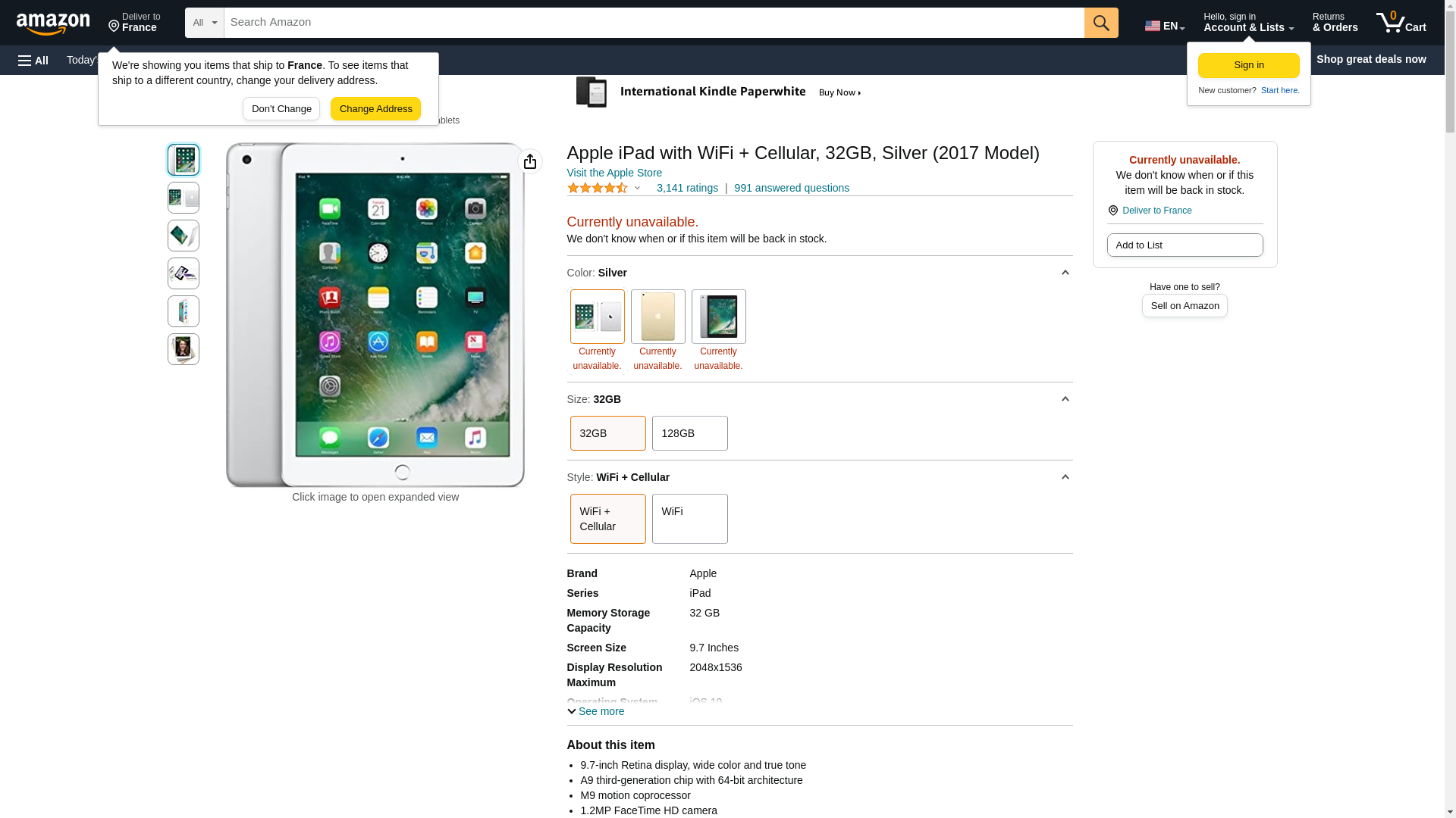 Apple iPad with WiFi + Cellular, 32GB, Silver (2017 Model)