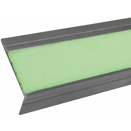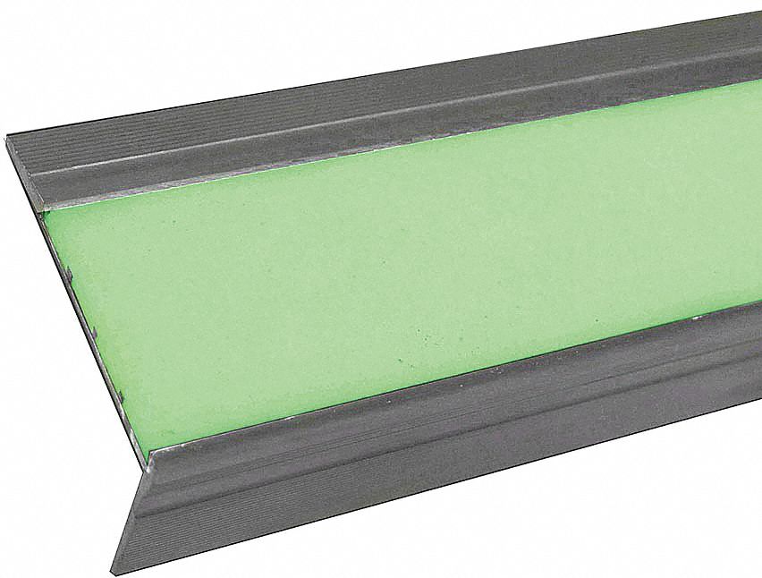 Stair Tread Cover Photoluminescent Aluminum Beveled Edge Type Installation Method Fasteners Depth 2-1/2 In. Width 48 In. Thickness 9/32 In. 1-1/4 in Lip Height Tread Pattern Grit Coating Includes Tapcon Screws Standards ASTM ADA