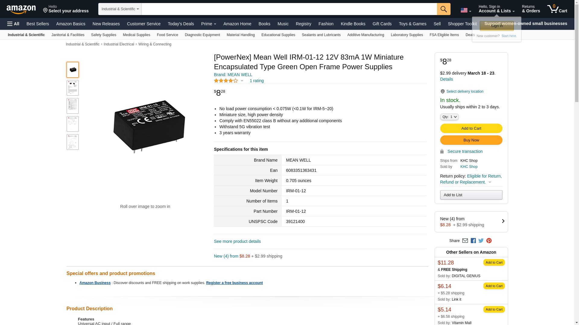 ![]() powersupplymall.com | IRM-01-12 | 1 | 48 | 1 | 1 @ $6.53 |