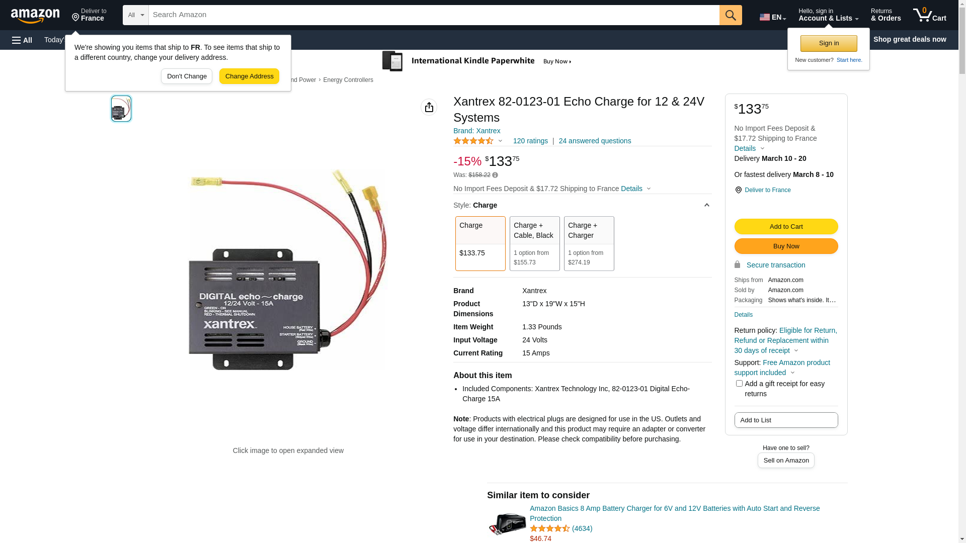 The Amazing Quality <b>Convenient Dual Battery Bank Charging</b><br/><br/>Xantrex digital echocharge (part#82-0123-01) is designed to charge auxiliary or starting batteries from an inverter/charger or other charging source with limited voltage drop. The Xantrex echocharge detects when the house battery bank is being charged and directs a portion of the charge current to auxiliary or starting batteries. The maximum charger current offered by echocharge is limited to 15 amps.<br/><br/><b>Product Features</b><br/><ul><li>15 A maximum charge current<br/> <li>Automatically adjusts for 12 or 24 volt battery banks (both battery banks must be the same DC voltage and battery type)<br/> <li>Automatically switches on/off without affecting the in-house battery bank or over-charging<br/> <li>Utilizes excess current from the primary charging source<br/> <li>Built-in thermal and over-current circuits<br/> <li>Reverse polarity protection<br/> <li>Easy three wire installation</li></ul> <!--- cis:p/ASsKDHt9Y= --->