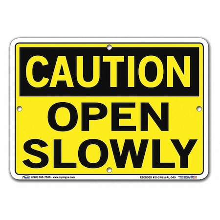 Vestil SI-C-02-A-AL-040 OPEN SLOWLY Caution Sign, Aluminum, 0.040" Overall Size, 10.5" W x 7.5" H
