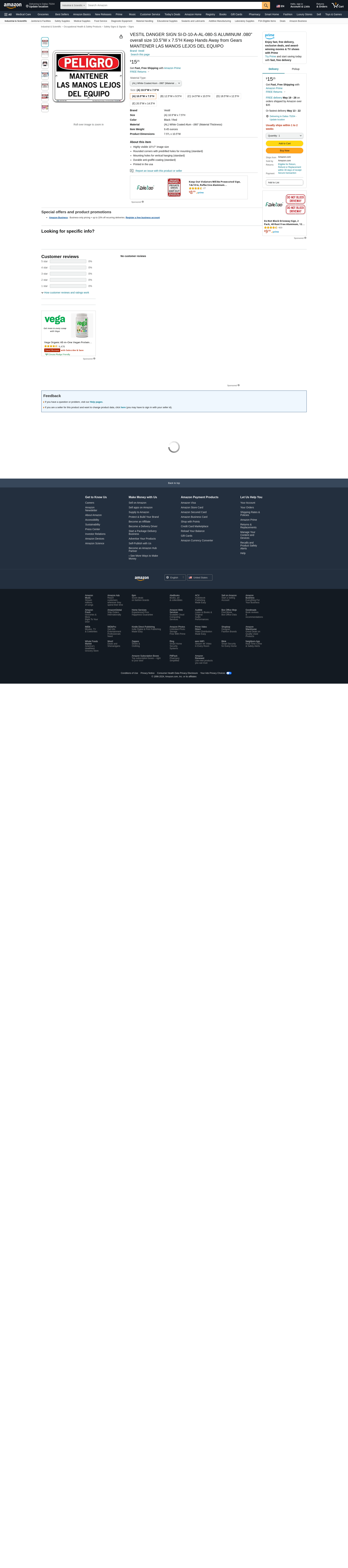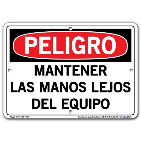 VESTIL DANGER SIGN SI-D-10-A-AL-080-S ALUMINUM .080" overall size 10.5"W x 7.5"H Keep Hands Away from Gears MANTENER LAS MANOS LEJOS DEL EQUIPO