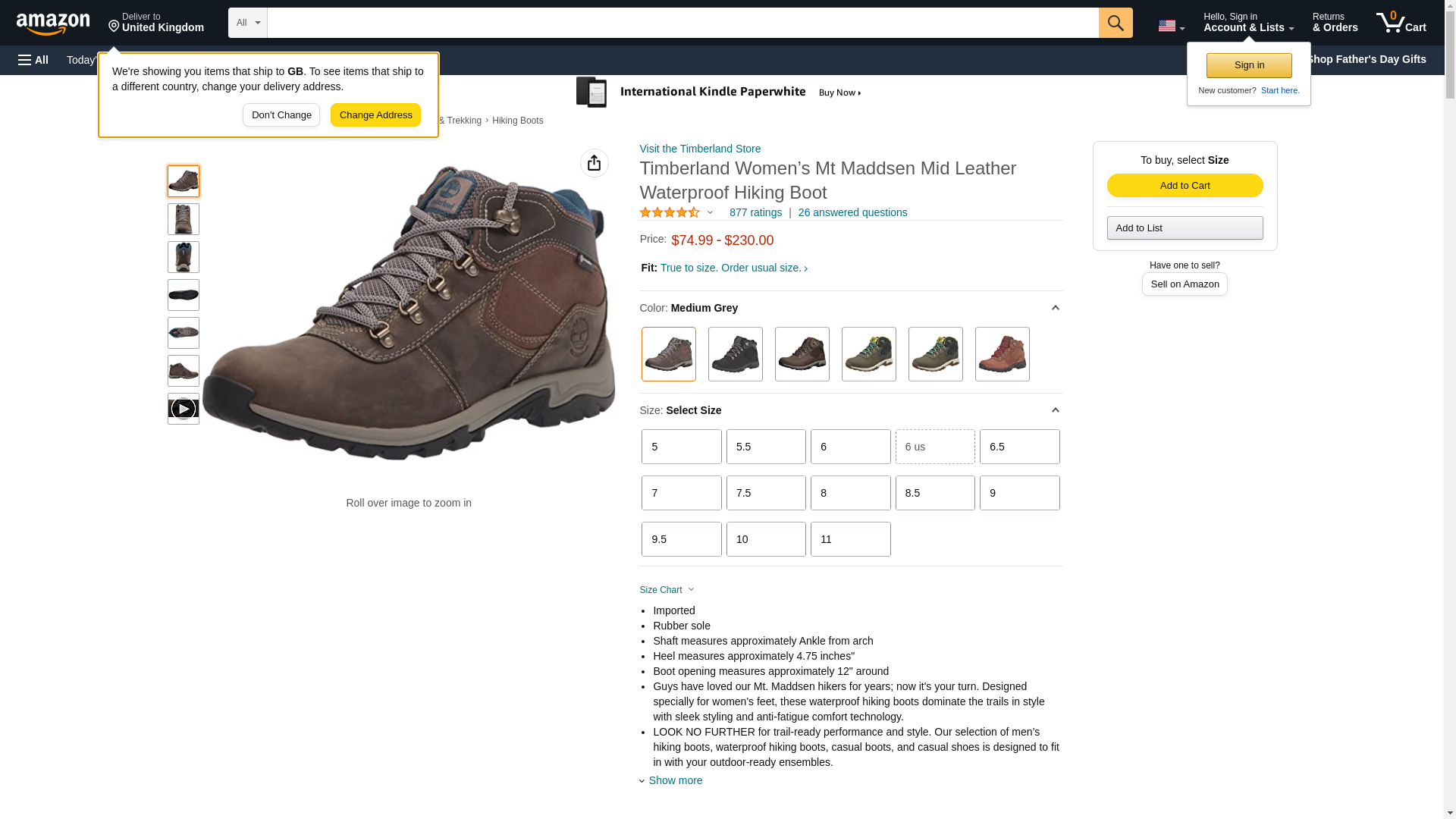 Timberland womens Mt. Maddsen Mid Lthr Wp Hiking Boot, Medium Grey, 8.5 US