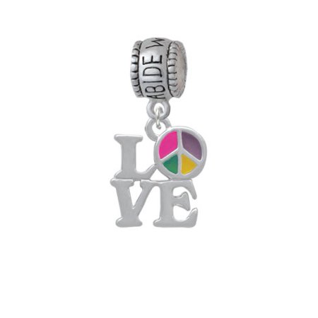 Silver Tone Love with Translucent Multicolored Peace Sign - Abide With Me Charm Bead Hanger. Silver Tone Charm. Charm size is approx. 0.72 x 0.57 x 0.07 inches (HxWxD) including loop. Charm Hanger Bead is approx. 13x10x8 mm (HxWxD) Hole size 5.5 mm. Our Charm Beads are compatible with most Charm Bead Bracelets. Also makes a great charms pendant. Featured charms is an exclusive Delight & Co. design. We are a family owned company for over 35 years in the U.S.A. PLEASE NOTE: Our products are lead safe, but are not intended for children 14 years and younger.