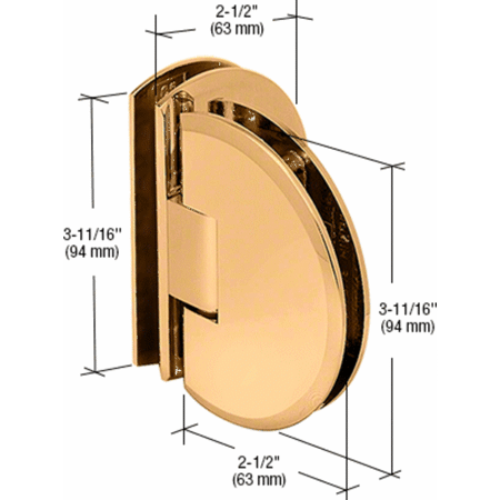 <ul> <li>3 Year Warranty</li> <li>Available in Several Beautiful Finishes</li> <li>Features Round Design and Beveled Edges</li> <li>Wall Mount Standard Back Plate</li> </ul>The <b>CRL Classique Shower Door Hinge</b> is a design apart from traditional hinges. The beautiful round design and beveled edges are the result of an artist's unique concept of the perfect hinge for dcors with strong curved and contoured influences. There are five distinct models, including a Flush Back Plate Wall Mount Hinge for clean exterior sight lines. The Classique's beveled edges make an excellent presentation of sleek design, while the solid brass construction ensures superior quality and long life. <br /> <br /> <b>Using two hinges</b> with 5/16" or 3/8" glass (8 or 10 mm) the hinge will hold up to 80 lbs. (36 kg) with a maximum door width of 31" (787 mm). <br /> <br /> <b>Using three hinges</b> with 5/16" or 3/8" glass (8 or 10 mm) the hinge will hold up to 120 lbs. (54 kg) with a maximum door width of 34" (864 mm). <br /> <br /> <b>SPECIFICATIONS:</b> <br /> <b>Glass Thickness:</b> 5/16" (8 mm) to 3/8" (10 mm) Tempered Safety Glass <br /> <b>Special Features:</b> Round design and beveled edges to match curved or contoured décors. <br /> <b>Construction:</b> Solid Brass <br /> <b>Hinge Swings:</b> 90º In and 90º Out <br /> <b>Closing Type:</b> Precise Closing to 0º <br /> <b>Cut-Out Required</b> <br /> <b>Includes:</b> Gaskets, Screws, and Glass Fabrication Dimensions <br /> <br />Custom finishes are available on request. Contact the CRL Technical Sales Shower Door Department. <h5 class="important-notes">Important Notes</h5> <p><b>NOTE:</b> All C.R. Laurence Hinges in this catalog are designed for residential or hotel shower use. If hinges are to be used for other than their intended purpose, approval must be obtained from the C.R. Laurence Technical Sales Department.<b>NOTE:</b> Use only the template included with our hinge. Cut-out dimensions for CRL hinges may not match those of other brands.</p> <ul> <li>Color - Gold Plated</li> <li>Minimum Order - 1 Each</li> <li>Ship Via - Can Ship UPS</li> <li>Shipping Weight - 2 lb (907g)</li> <li>Subcategory - CRL Gold Plated Classique 090 Series 90 Degree Glass-to-Glass Hinge</li> <li>Manufacturer - CR Laurence</li> <li>MSRP - 0.00</li> <li>MfrPartNumber - CLA090GP</li> <li>Brand - CR Laurence</li> <li>Height - 3-11/16" (93.7 mm)</li> <li>Width - 2-1/2" (63 mm)</li> <li>Vendor - CRLaurence</li> </ul>