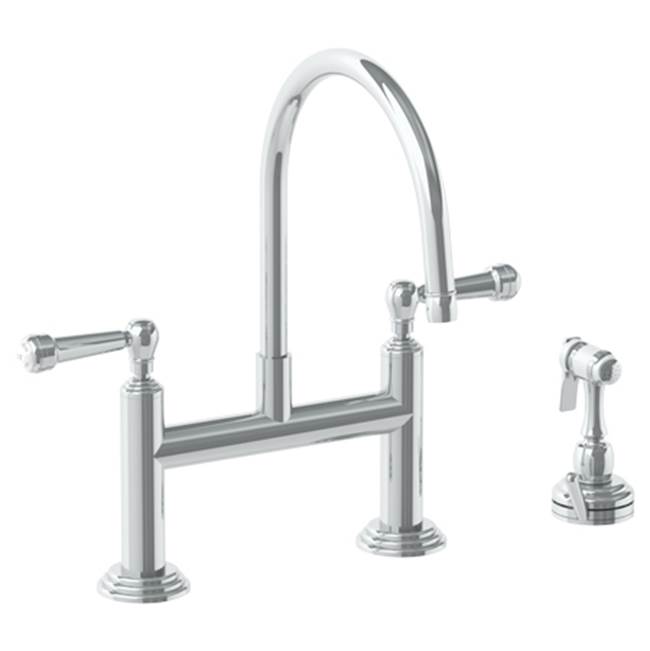 WATERMARK 321-7.65-S2-SN STRATFORD 14 7/8 INCH THREE HOLES DECK MOUNT BRIDGE KITCHEN FAUCET WITH INDEPENDENT SIDE...