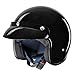 AHR Vintage Retro 3/4 Open Face Motorcycle Helmet with Removable Snap on Visor DOT Approved High Gloss Black L