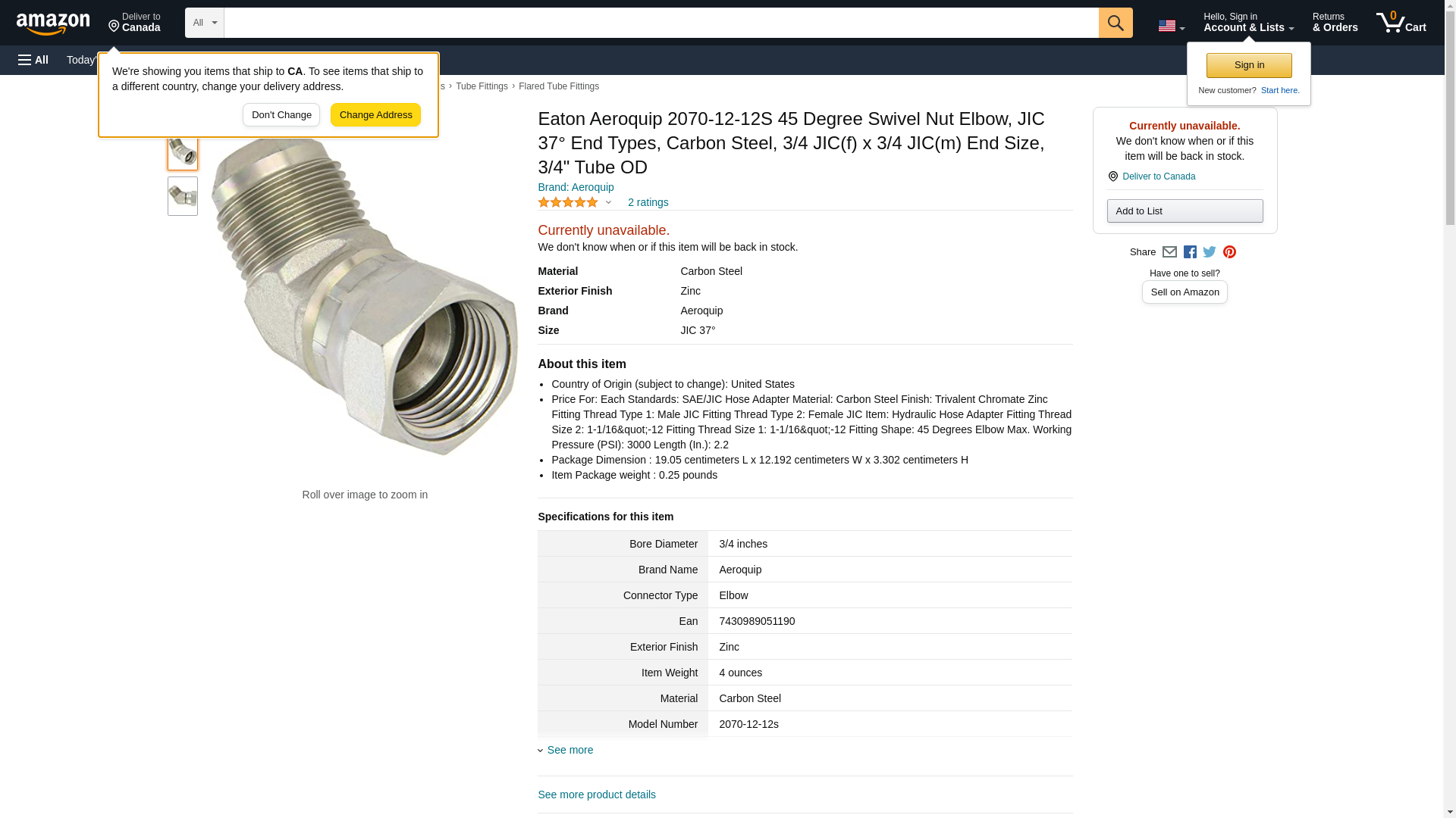 Eaton Aeroquip Hose Adapter,3-4",JIC,3-4",JIC 2070-12-12s ZO-G0994077 - SIM Supply