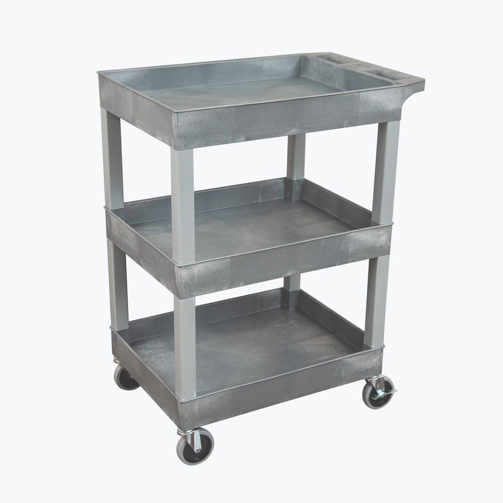 Luxor SEC111HD-G 24 x 18 Plastic Utility Cart Three Shelf Gray | JB Tools