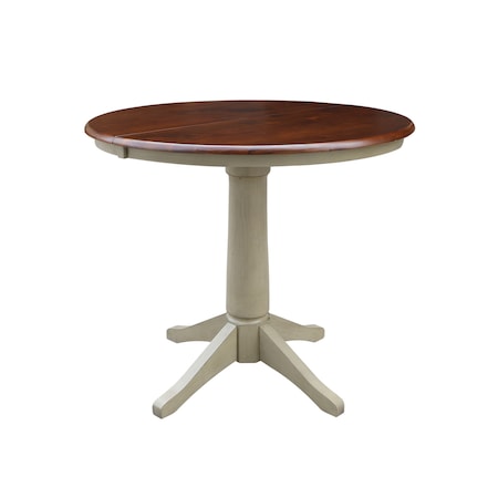 International Concepts 36" Round Top Pedestal Table with 12" Leaf-28.9" H-Dining Height, Antiqued Almond/Espresso