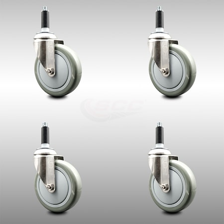 Service Caster Brand 5 Inch 316 Stainless Steel Light Duty Swivel Expanding Stem Caster Set of 4 Gray Polyurethane Caster Wheels and 7/8” Stem–1,400lbs. Total Cpty–Casters