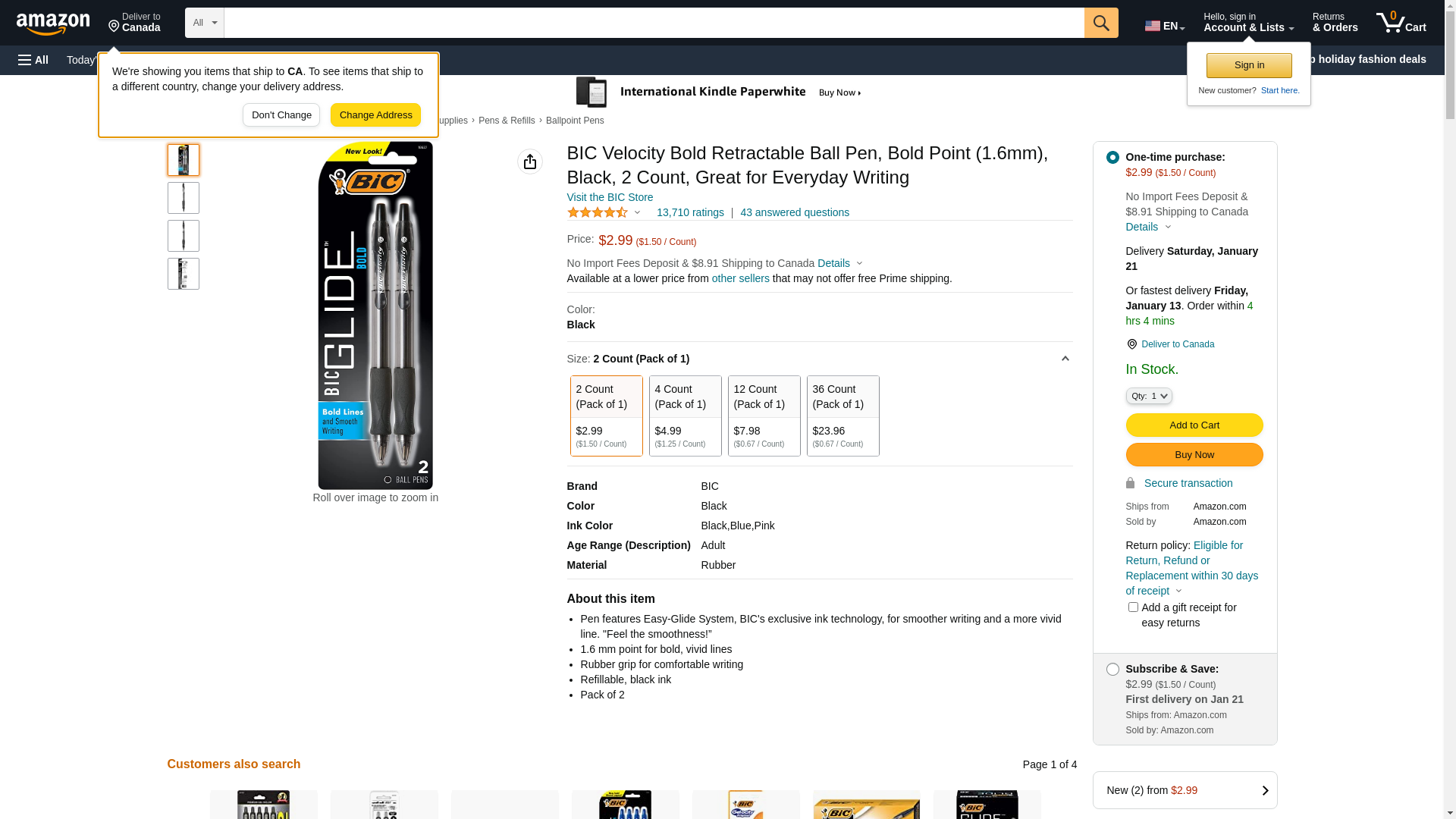 Amazon.com: BIC Velocity Bold Retractable Ball Pen, Bold Point (1.6mm), Black, 2 Count, Great for Everyday Writing