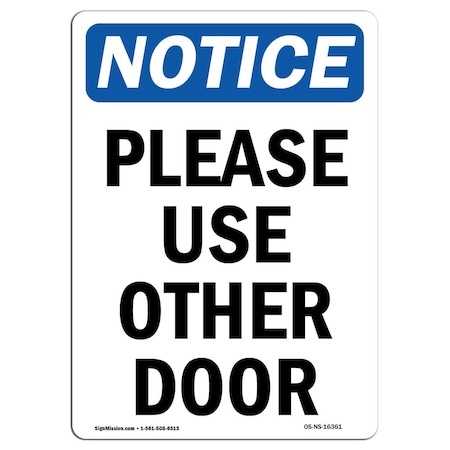 OSHA Notice Sign, NOTICE Please Use Other Door, 5in X 3.5in Decal, 10PK