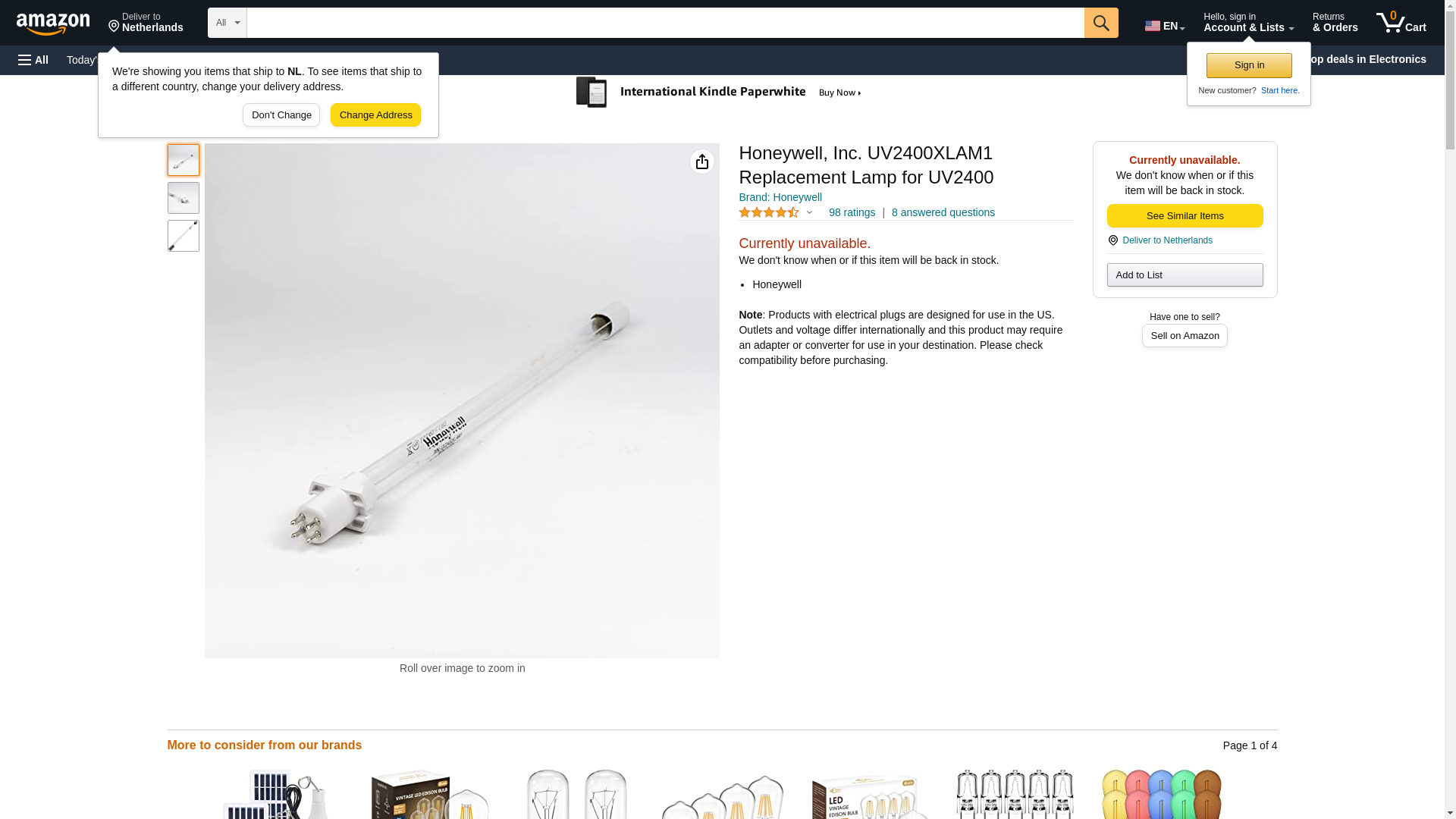 Honeywell, Inc.,UV2400XLAM1,UV2400XLAM1,UV2400XLAM1 Warning: This product can expose you to chemicals which is [are] known to the State of California to cause cancer and birth defects or other reproductive harm.