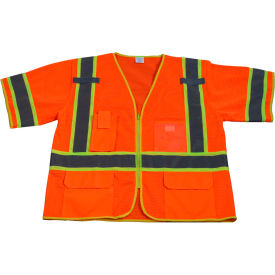 Petra Roc OVM3-CB1-S/M Safety Vest, ANSI Class 3, Two Tone Orange Mesh Deluxe with Lime Contrast Binding, Zipper Closure, 5 Pockets/2 Mic Tab, S/M