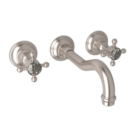 ROHL ITALIAN BATH ACQUI TRIM SET ONLY WITH NO ROUGH VALVE BODY TO WALL MOUNTED THREE HOLE WIDESPREAD LAVATORY FAUCET WITH CRYSTAL CROSS HANDLES AND 8 1/2" REACH COLUMN SPOUT IN SATIN NICKEL