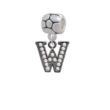 Black Nickel Tone Crystal Black Letter - W - Beaded Border - Pebble Charm Bead Hanger. Black Nickel Tone Charm. Charm size is approx. 0.58 x 0.61 x 0.11 inches (HxWxD) including loop. Charm Hanger Bead is approx. 12x9x9mm (HxWxD) Hole size 5.5 mm. Our Charm Beads are compatible with most Charm Bead Bracelets. Also makes a great charms pendant. Featured charms is an exclusive Delight & Co. design. We are a family owned company for over 35 years in the U.S.A. PLEASE NOTE: Our products are lead safe, but are not intended for children 14 years and younger.