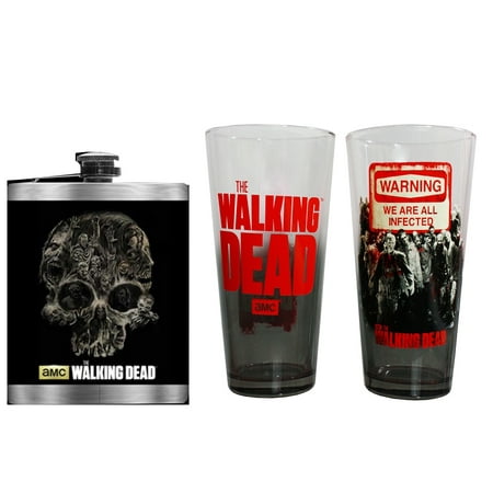 The Walking Dead Walker Bundle, Pint Glass 2-Pack and 8oz Flask