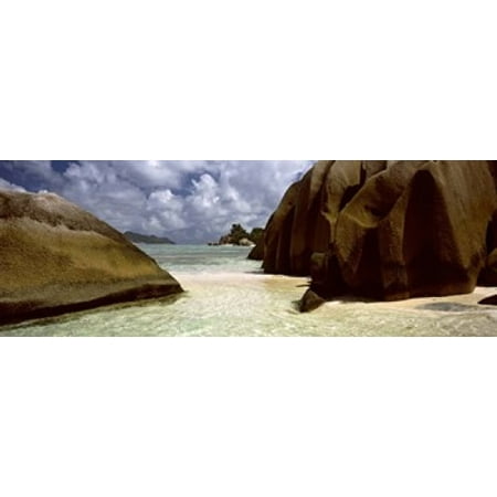 Crystal clear waters and large granite rocks on Anse Source dArgent beach La Digue Island Seychelles Poster Print