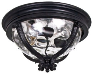 Maxim 41420WGBK Camden VX Non-Corrosive UV Resistant Water Glass Outdoor Flush Mount Ceiling Light, 3-Light 120 Total Watts, 9" H x 16" W, Black