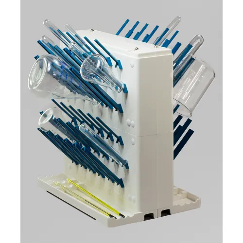 - Drip/storage trays have scalloped wells to hold long thin lab ware