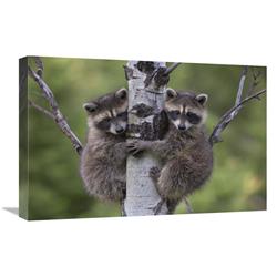 Global Gallery Budget GCS-396250-1624-142 Tim Fitzharris Raccoon Two Babies Climbing Tree North America Gallery Wrap Giclee on Canvas Wall Art Print