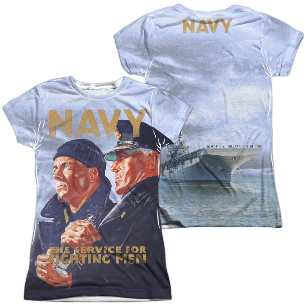 Trevco NA119FB-JSPP-3 Navy & Long Gaze Front & Back Print Junior Cap Sleeve Polyster Crew Neck T-Shirt, White - Larg