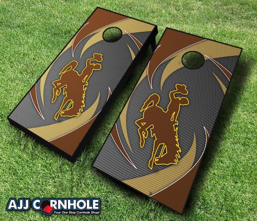 AJJCornhole 110-WyomingSwoosh Wyoming Cowboys Swoosh Theme Cornhole Set with Bags - 8 x 24 x 48 in.