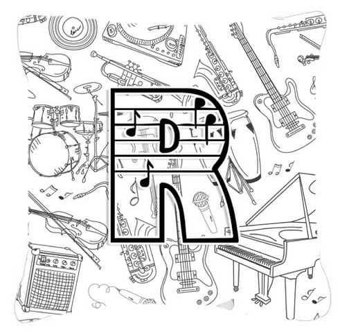 Caroline's Treasures CJ2007-RPW1414 Letter R Musical Note Letters Fabric Decorative Pillow 100% Machine Washable Pillow, Indoor or Outdoor Decorative Throw Pillow for Couch, Bed or Patio