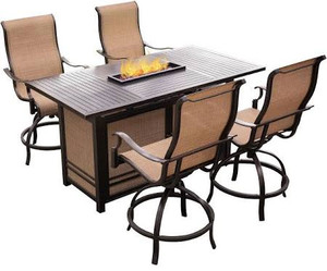 Hanover MONDN5PCFP-BR Monaco 5-Piece High-Dining Set with 4 Swivel Chairs, and a 30,000 BTU Fire Pit Table Outdoor Furniture, Tan