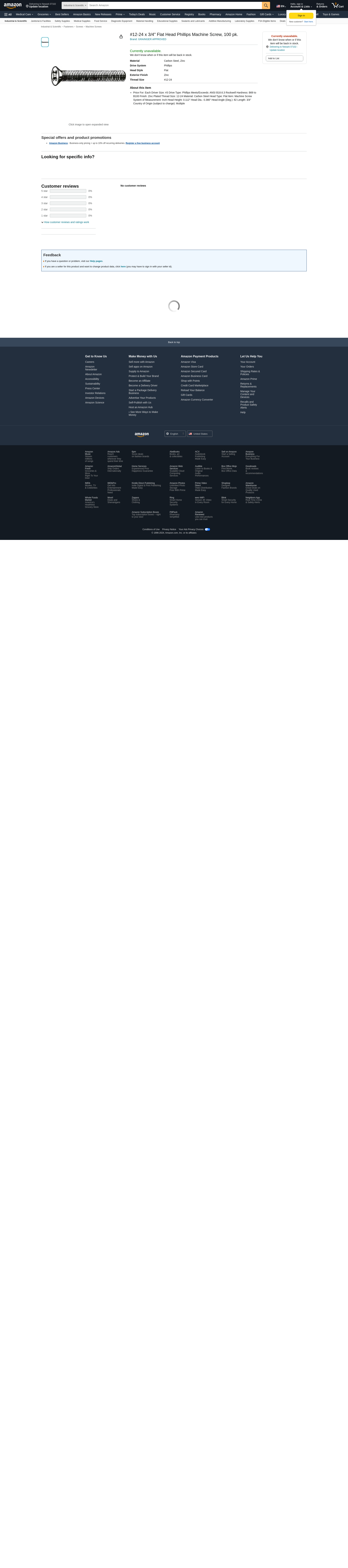 Machine Screw, Head Type Flat, Material Steel, Finish Zinc Plated, Drive Phillips, Thread Size #12-24, Fastener Length 3/4 in, Head Width 0.412 in, Head Height 0.412 in, Drive Size #3, Tensile Strength 60,000 psi, Dimensional Standards ASME B18.6.3, Pack Size Small, Minimum Thread Length Not Applicable, Type Standard Machine Screw, Washer Outside Diameter Not Applicable, Washer Thickness Not Applicable, Maximum Head Width 0.412 in, Minimum Head Width 0.38 in, Maximum Head Height 0.412 in