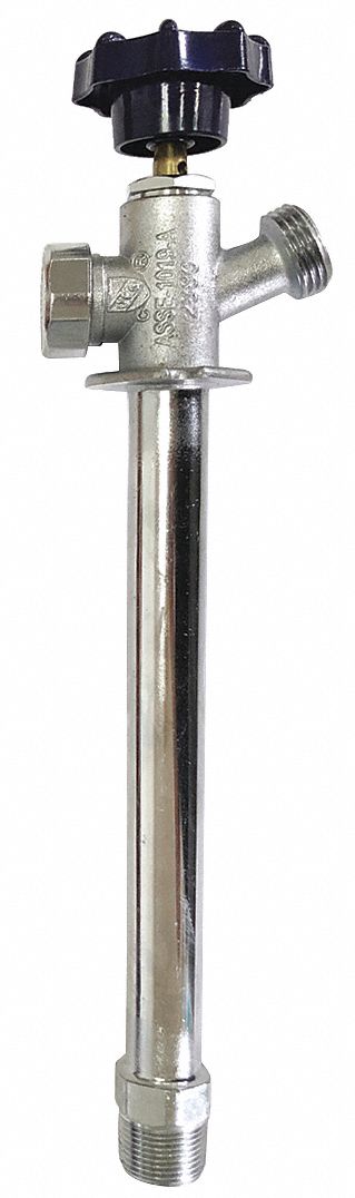 Frost Proof Sillcock, Inlet Type MNPT or FNPT, Inlet Size 3/4 In. x 1/2 In., Thru-Wall Length 14 In., Body Material Brass, Handle Type Handwheel, Disc Type EPDM, Handle Material Aluminum, Max. Pressure 125 psi, Max. Temp. 140 Degrees F, Includes Vacuum Breaker, Anti-Siphon, Standards ASSE 1019