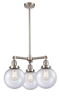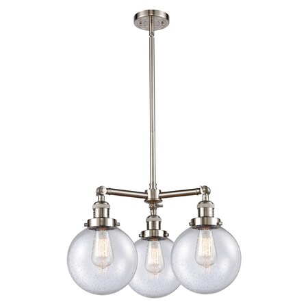 Innovations 207-SN-G204-8-LED 3 Light Vintage Dimmable LED Chandelier, Brushed Satin Nickel