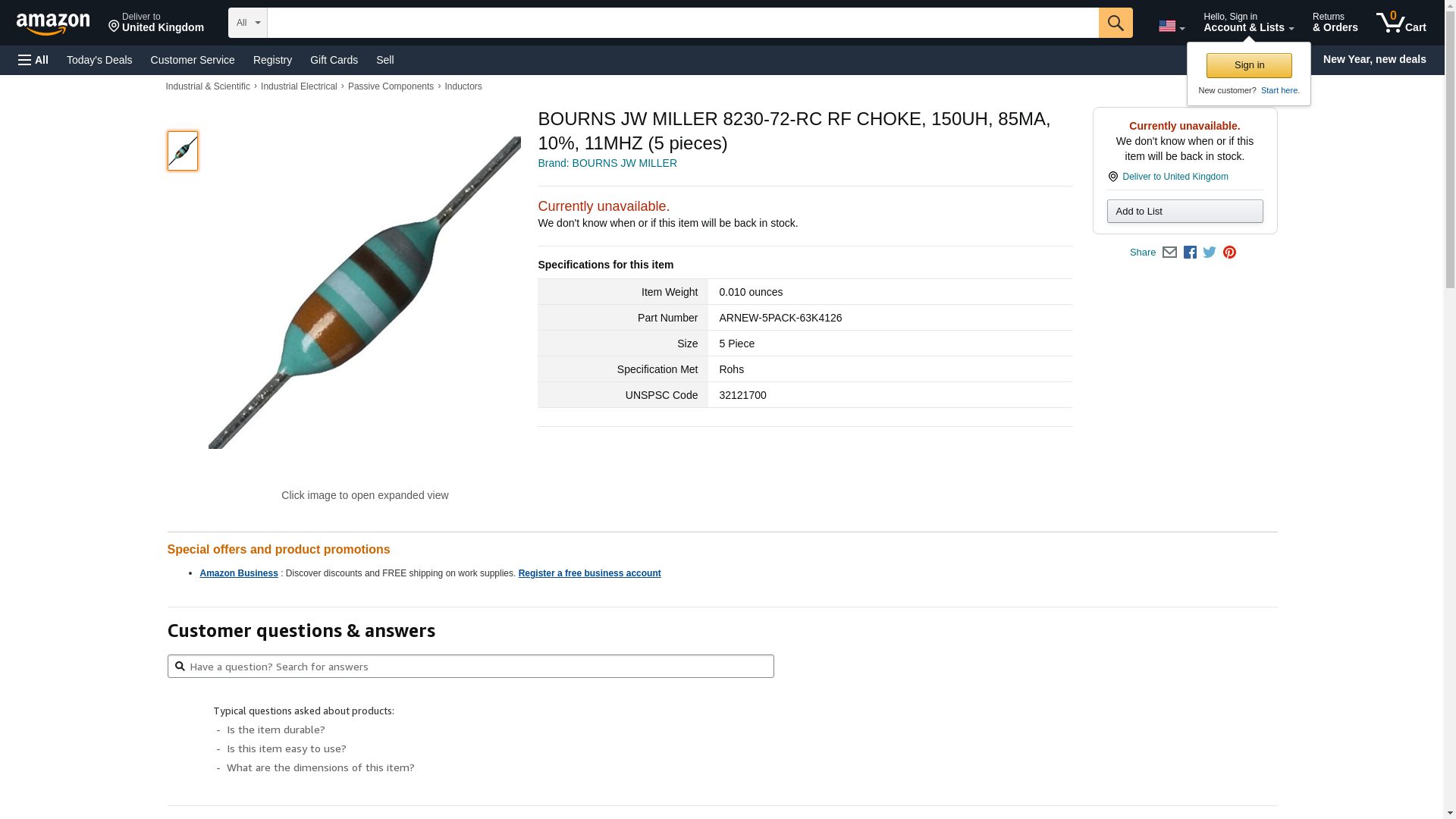 BOURNS JW MILLER 8230-72-RC RF CHOKE, 150UH, 85MA, 10%, 11MHZ