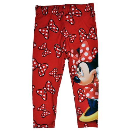 <ul> <li>Disney Toddler Girls Minnie Mouse Bows Leggings in Red</li> <li>Features a graphic print of Minnie Mouse on the left leg and Bows all-over.</li> <li>Elastic waist, stretch about 1-inch.</li> <li>95% polyester 5% spandex. Thin, lightweight leggings, perfect for spring & summer.</li> <li>Toddler girls sizing, Runs small</li> </ul>
