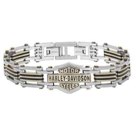 Harley-Davidson Mens Brass & Steel Bar & Shield Chain Bracelet Blk HSB0188 (8.5)