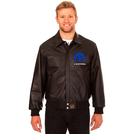 <ul> <li>MOPAR Mens Black Leather Bomber Jacket</li> <li>Bomber Style Jacket with Leather Body, Sleeves & Collar with Knit Trim</li> <li>Embroidered Applique MOPAR Logos</li> <li>Heavy Satin Lining in the Body and Sleeves with 2 Inside Chest Pockets</li> <li>MOPAR Officially Licensed Item 100% Made In the U.S.A.</li> </ul>