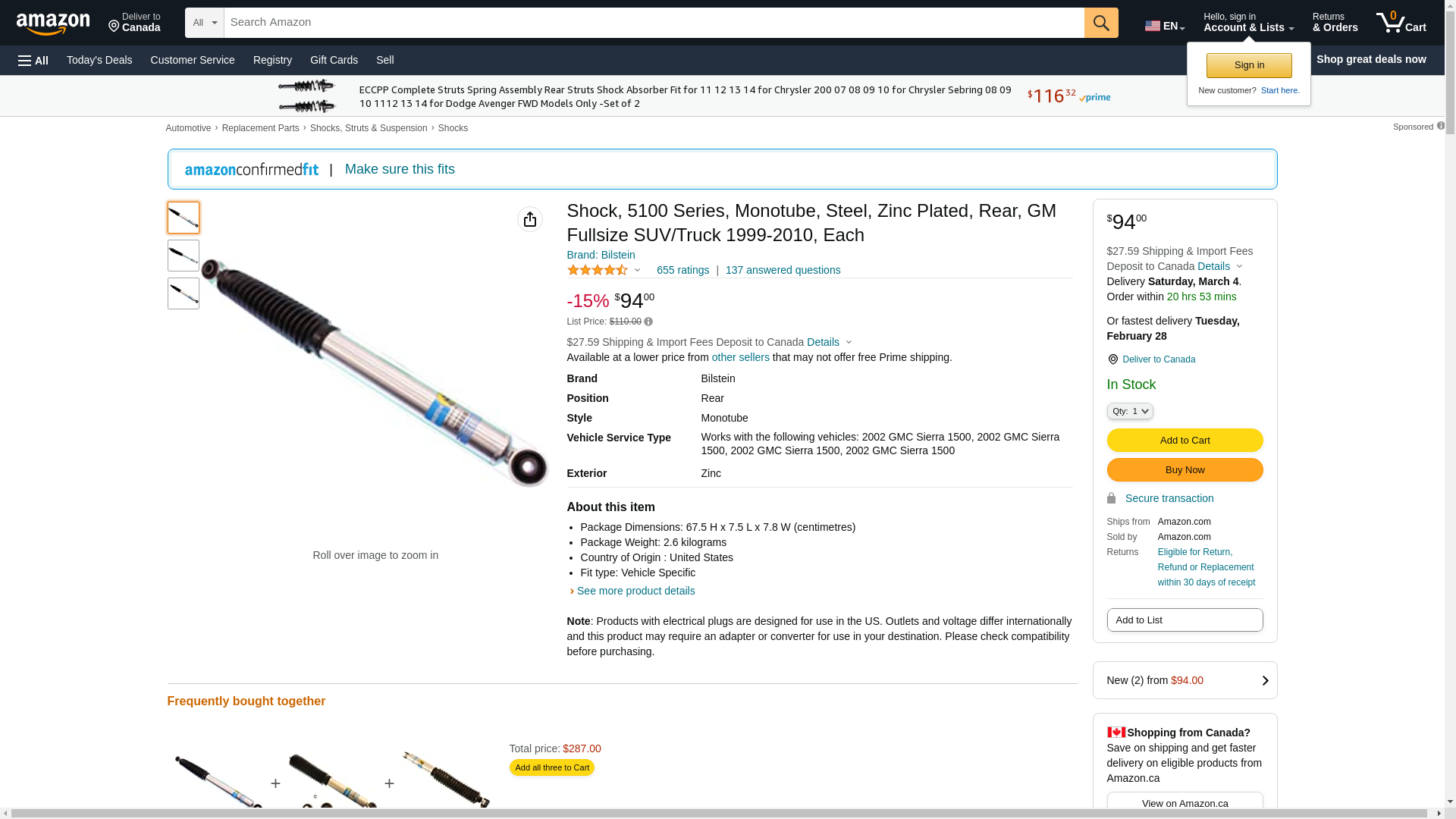 ![]() automotivestuff.com | BILSTEIN-24-186742 | 1 | -2 | 1 | 1 @ $111.60 |