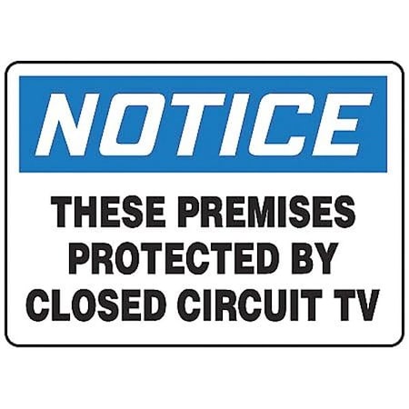 Accuform MASE830VA Aluminum Safety Sign, Legend "Notice These Premises Protected by Closed Circuit TV", 10" Length x 14" Width, Blue/Black on White