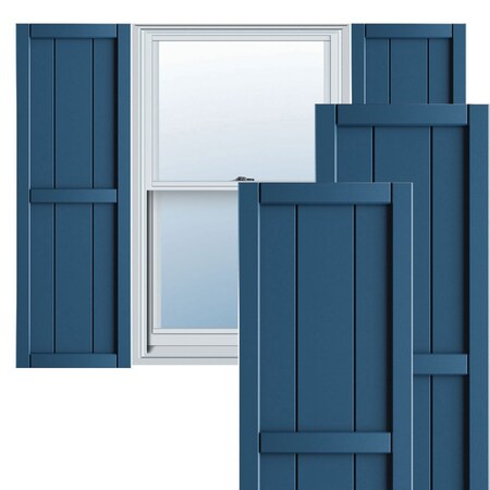 True Fit PVC, Four Board Framed Board-n-Batten Shutters, Sojourn Blue, 21 1/2"W x 31"H