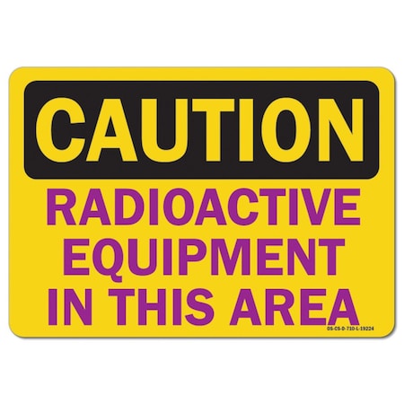 OSHA Caution Decal, Radioactive Equipment In This Area, 10in X 7in Decal