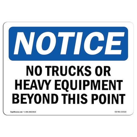 OSHA Notice Sign, No Trucks Or Heavy Equipment Beyond This Point, 14in X 10in Aluminum