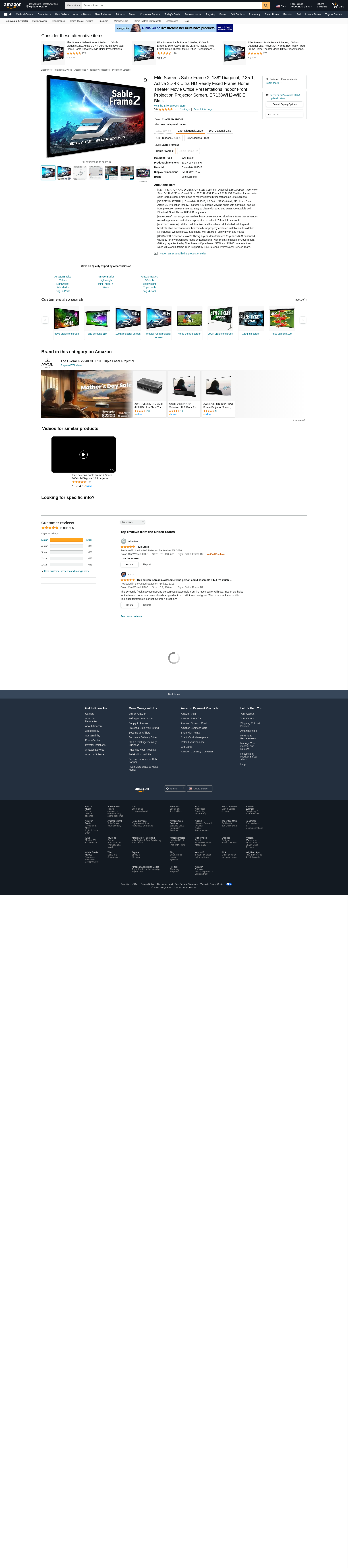Best Buy: Elite Screens SableFrame 2 Series 138" Projector Screen Black ER138WH2-WIDE