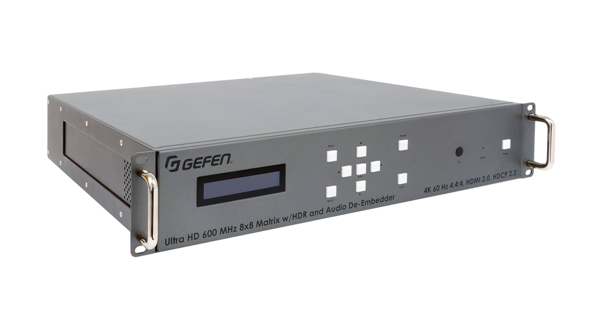 Buy the Gefen EXT-UHD600A-88, 4K Ultra HD 600 MHz 8x8 Matrix with HDR at Full Compass Systems. 0% Financing and Free Shipping on thousands of items!